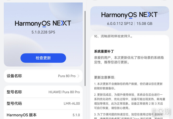新浪众测提供的Pura80 Pro手机到手时,系统是5.10版本。